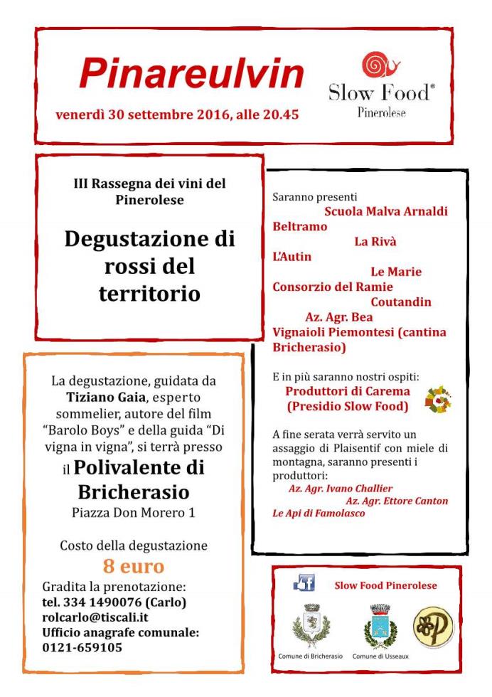 In allegato il programma dei festeggiamenti per la Festa del'Uva di Bricherasio. Di seguito le locandine di alcuni eventi legati alla Strada delle Mele: "Una domenica in Cascina" e "Pinareulvin" Archivio news >