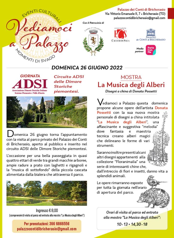 Domenica 26 giugno Visita al Parco privato del Palazzo dei Conti di Bricherasioe e mostra "La musica degli Alberi". Ingresso 8.00. Info: 3666866556 - palazzocontidibricherasio@gmail.com