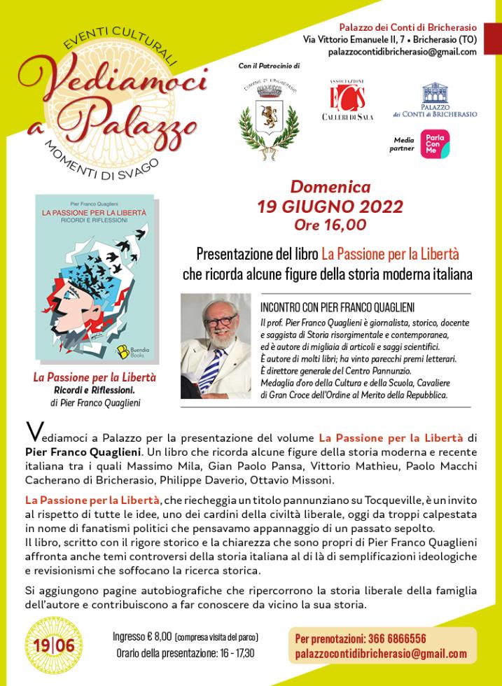 Domenica 19 giugno ore 16 presentazione del libro La Passione per la libertà che ricorda alcune figure della storia moderna italiana.