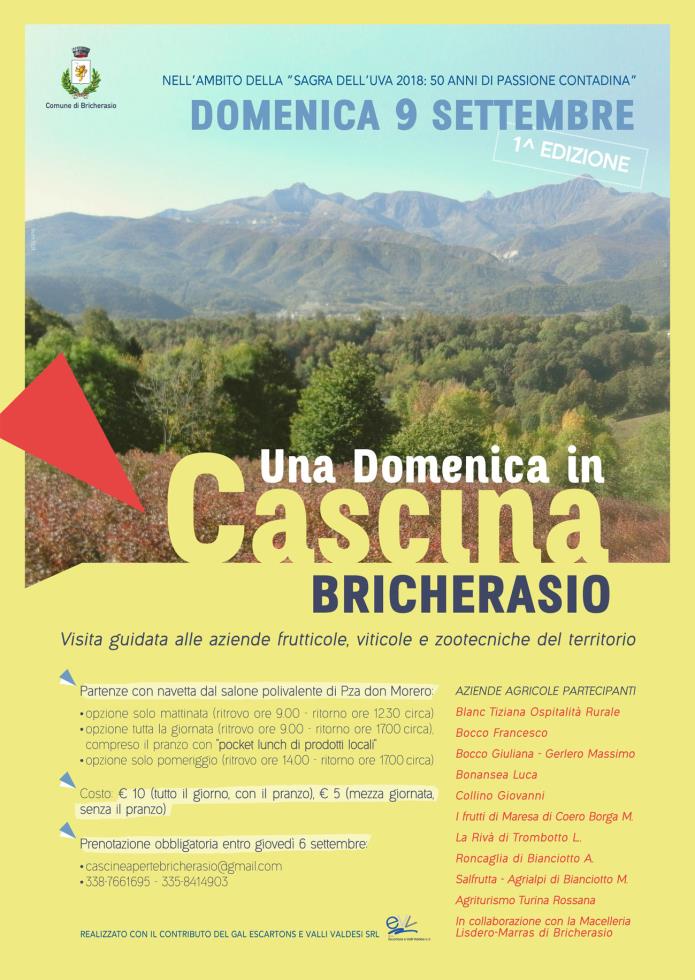 In allegato il programma dei festeggiamenti per la Festa del'Uva di Bricherasio. Di seguito le locandine di alcuni eventi legati alla Strada delle Mele: "Una domenica in Cascina" e "Pinareulvin" Archivio news >