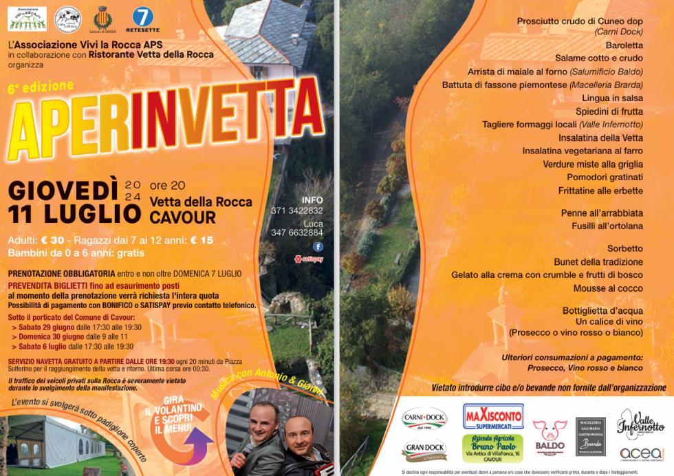GIOVEDI' 11 LUGLIO ORE 20.00 APERINVETTA presso VETTA DELLA ROCCA (vedi locandina allegata con programma e menù) VENERDI' 12 LUGLIO ORE ORE 20.30 ROCCA FEST SANGRIA E PAELLA presso VETTA DELLA ROCCA (vedi locandina allegata con programma completo) Archivio news >