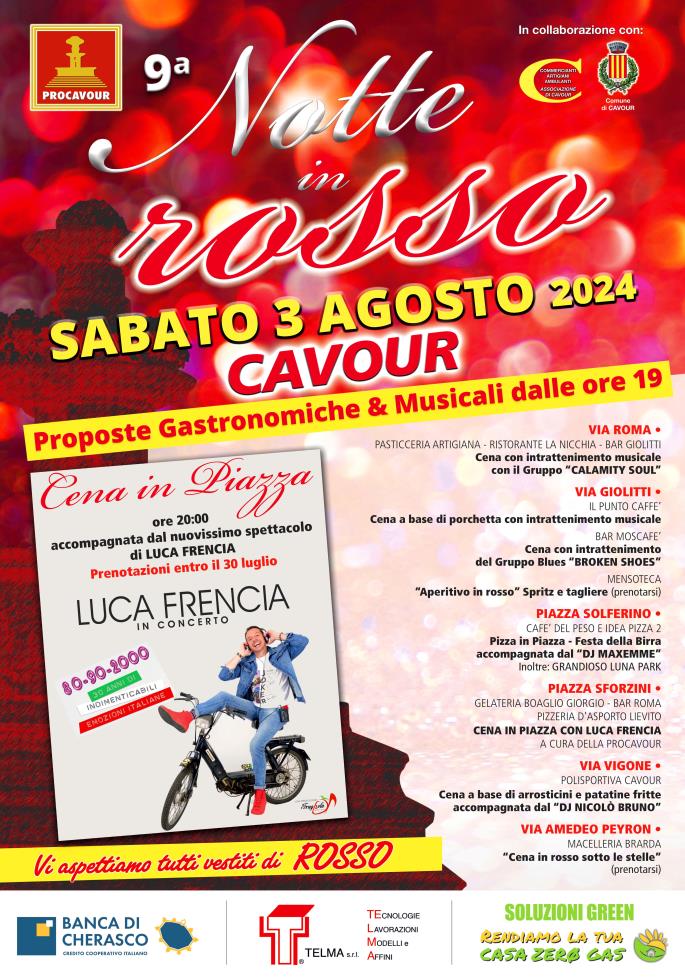 Torna a grande richiesta la nona edizione della Notte in Rosso a Cavour SABATO 3 AGOSTO.